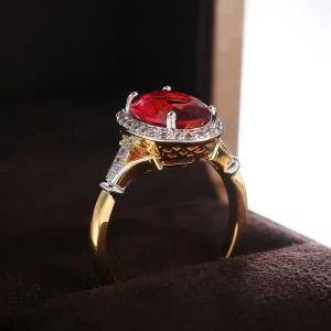 Produktbeschreibung Dieser elegante Ring kombiniert einen leuchtend roten, oval geschliffenen Zirkonia mit einem zarten, 18K-goldfarbenen Band und strahlt pure Eleganz aus.Der funkelnde Stein ist in einer klassischen Krappenfassung eingefasst, wodurch seine Farbe und Brillanz perfekt zur Geltung kommen – ideal als Verlobungsring, als feiner Trauring oder als edler Statement-Ring für besondere Anlässe. Das schmale Band…