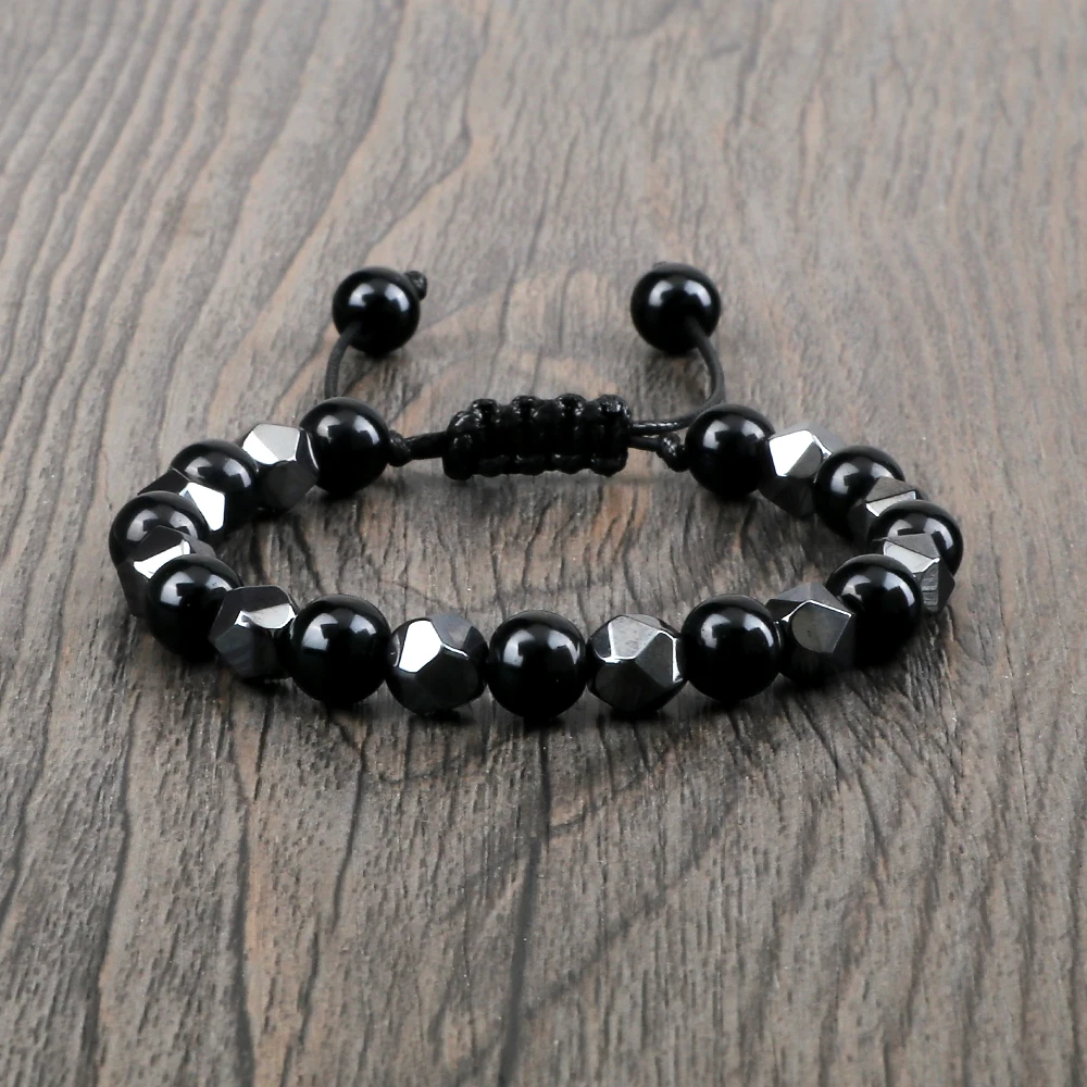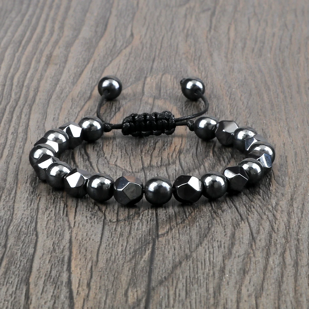 8mm Natursteinarmband – Schwarzer Lavastein & Hämatit