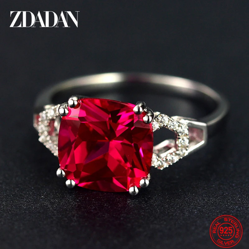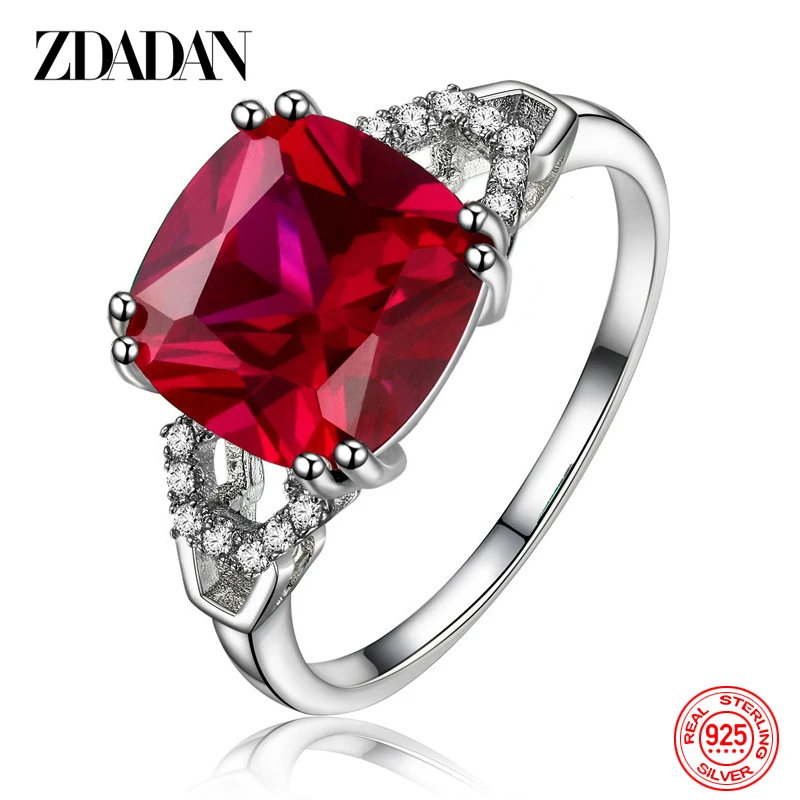 The ZDADAN 925 Sterling Silver Ruby Ring radiates timeless beauty and grace.