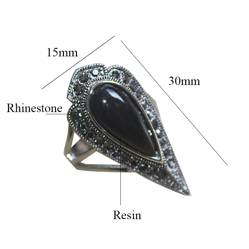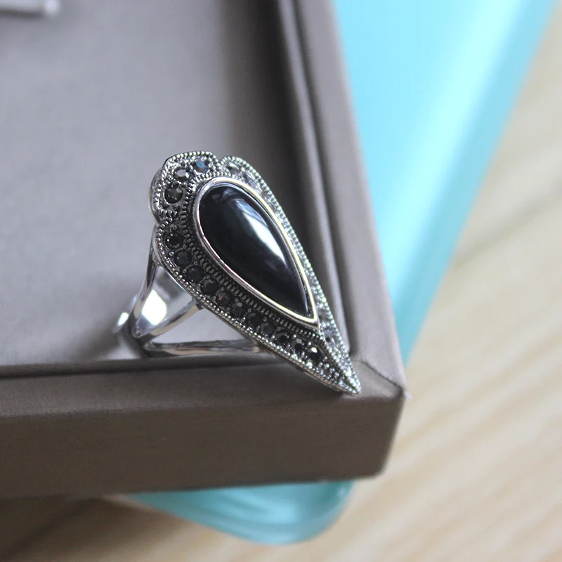 Ajojewel Original Black Water Drop Resin Ring – Vintage Statement Ring (18K White Gold Plated)