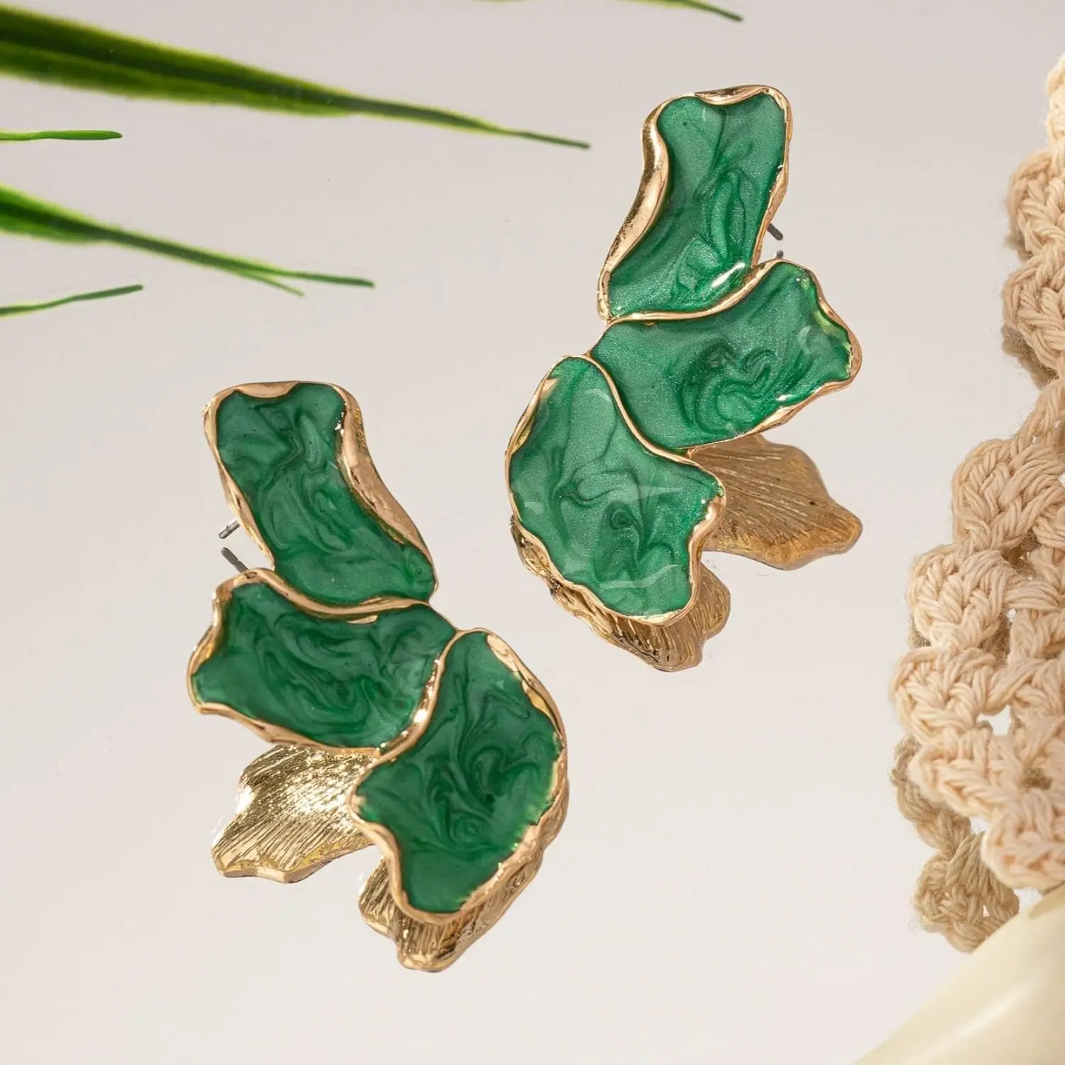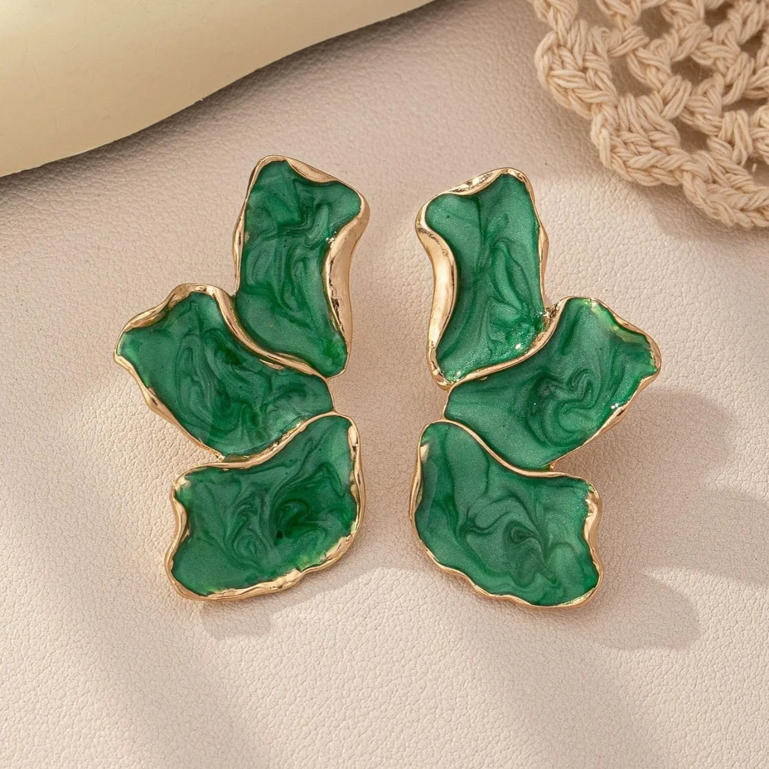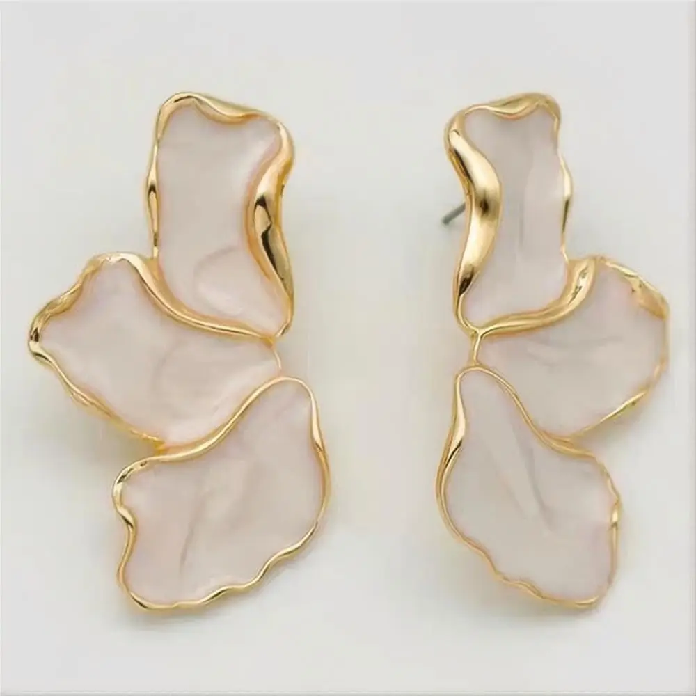 These eye-catching petal statement earrings combine modern design with natural elegance. The irregular flower shape creates a unique and artistic look, making each pair a true standout piece.