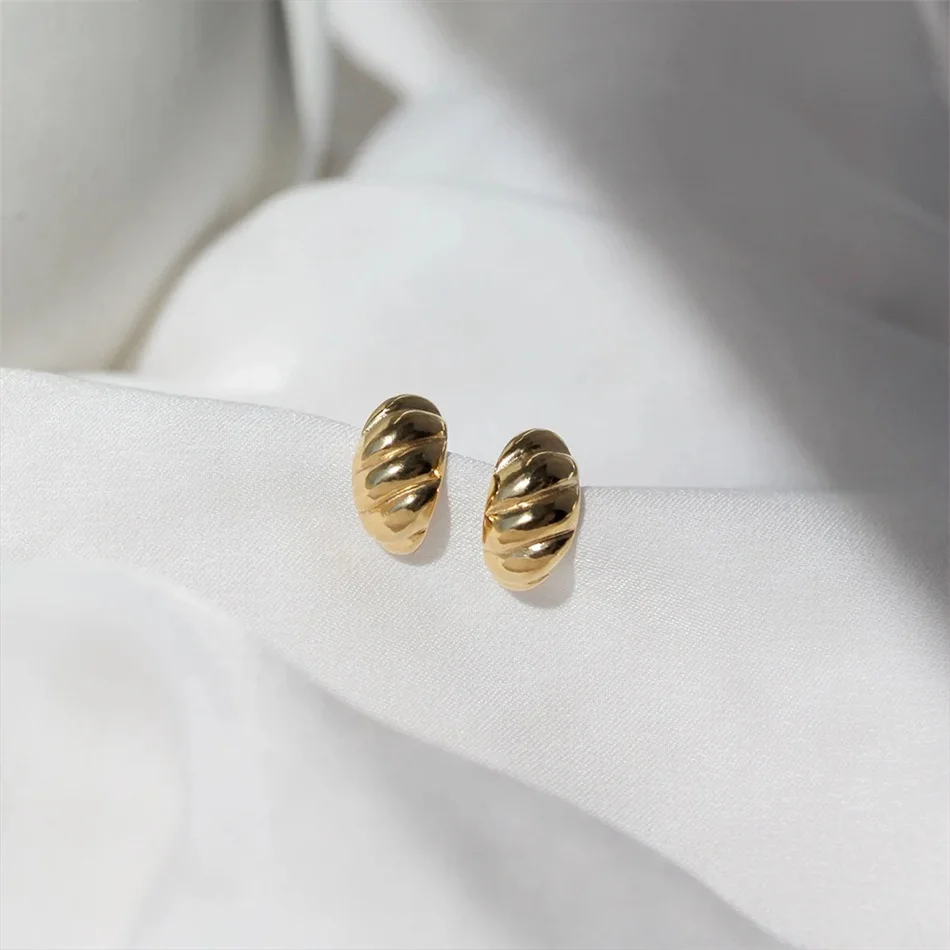 These elegant bread texture stud earrings feature a minimalist design with a unique textured surface. The subtle “bread-like” finish adds depth to the round shape, creating a refined and stylish look.