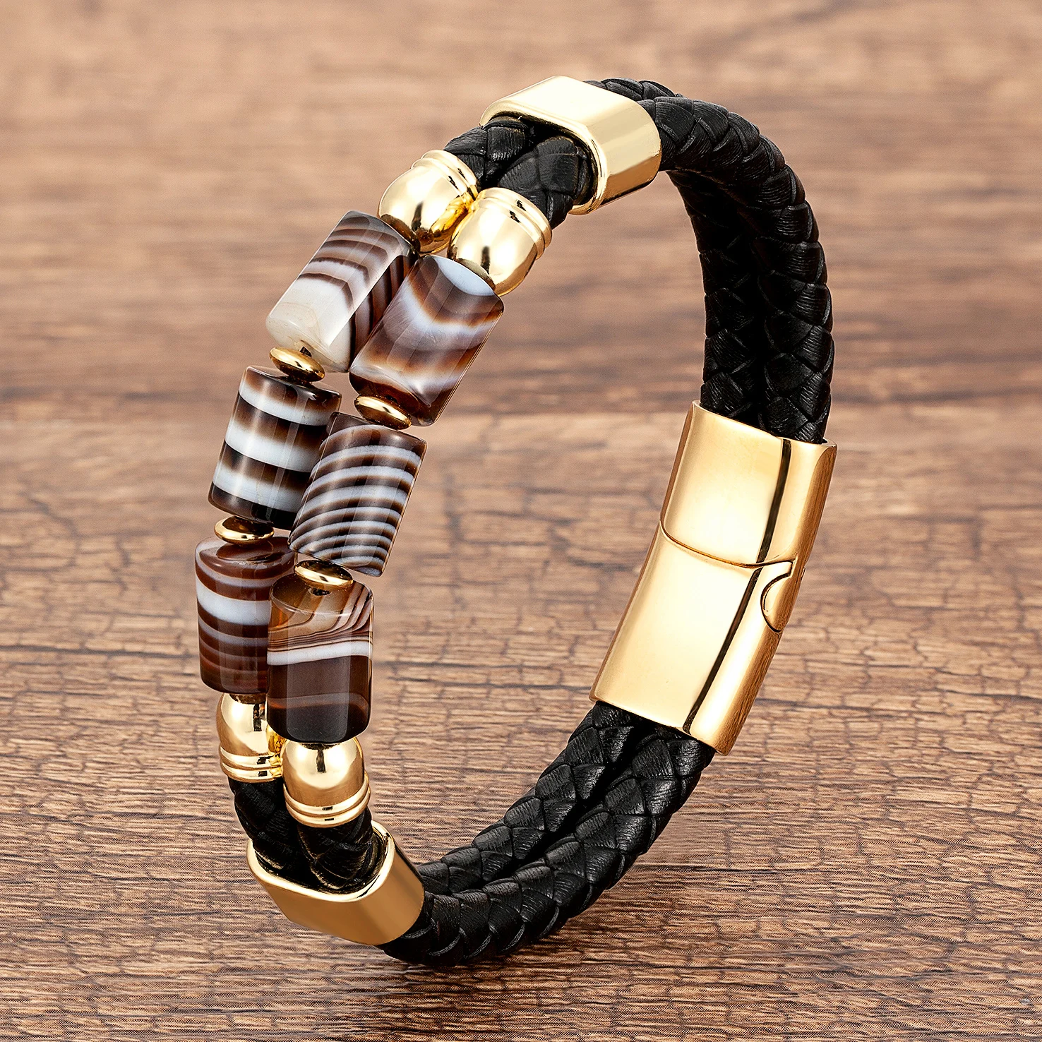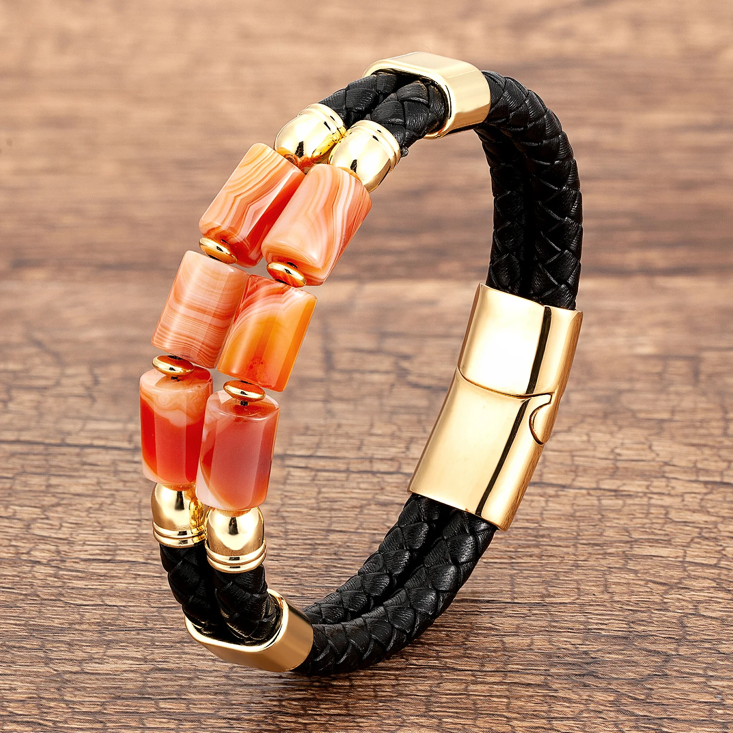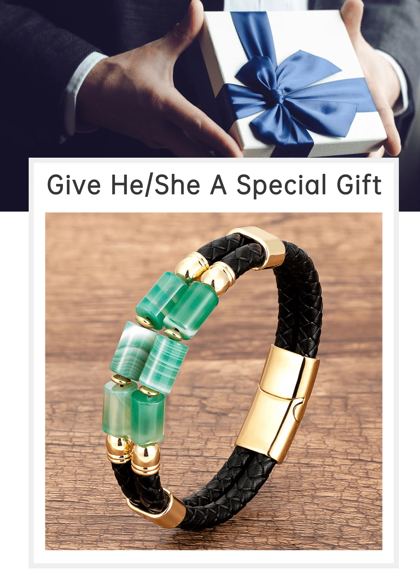 Crafted from genuine natural stones, high-quality leather, and a durable stainless steel magnetic clasp, this bracelet stands out as a refined statement piece. It blends elegance with a trendy, slightly edgy character, making it suitable for both casual and formal outfits.