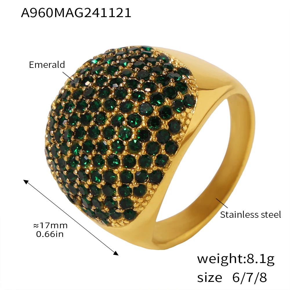Crafted from premium stainless steel with 18K gold plating, this statement piece features a brilliant round zircon stone that radiates elegance and sophistication.