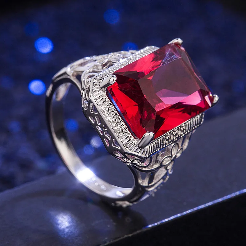 The HuiSept Classic Silver Ring showcases timeless sophistication with a bold rectangular ruby gemstone set in genuine 925 sterling silver.