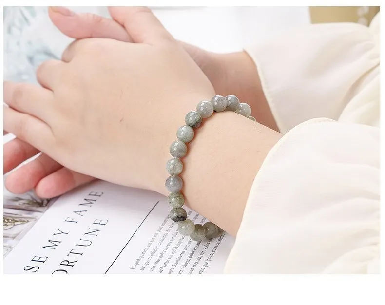 This premium Labradorite bracelet combines natural beauty with energetic power. Labradorite is renowned for its captivating iridescent glow, shimmering in blue, green, and gray hues depending on the light.
