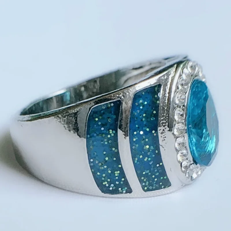 Luxuriöser 925 Sterling Silber Ovalring mit Blauem Zirkonia