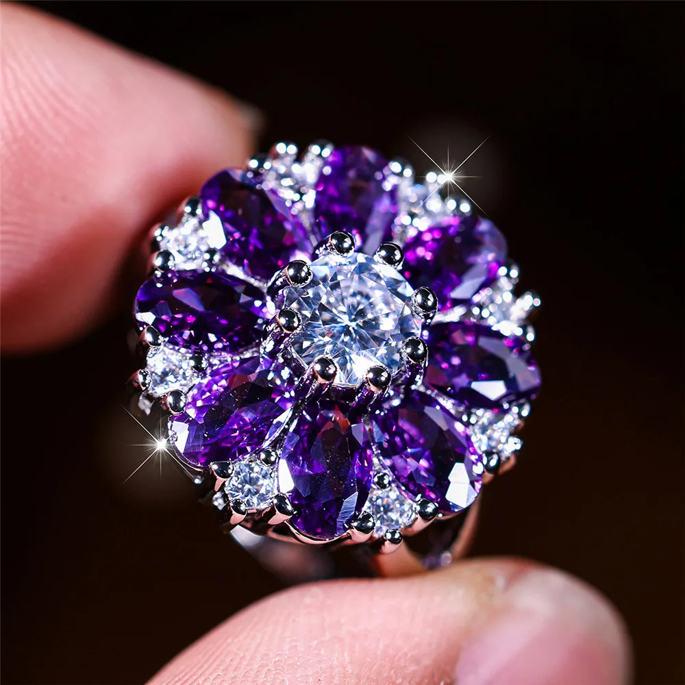 Der Luxury Female Crystal Purple Stone Ring ist ein wahrer Blickfang und Symbol für feminine Eleganz.