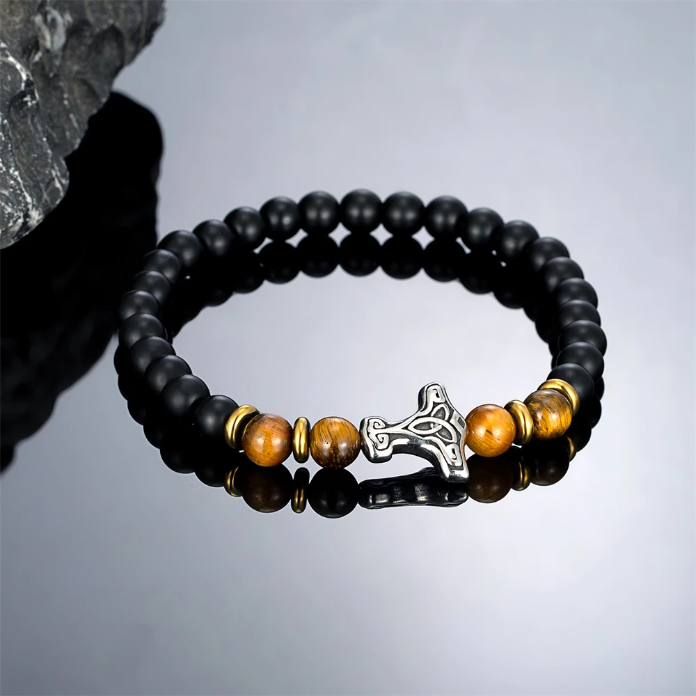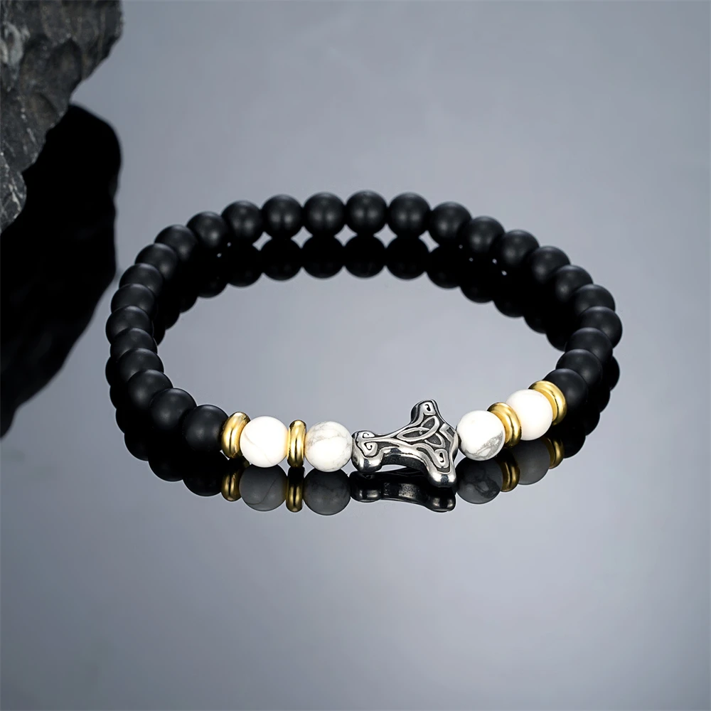 This powerful Mjolnir Stone Bracelet blends Norse mythology with modern design. Inspired by Thor’s legendary hammer, the Mjölnir charm symbolizes protection, strength, and courage – making it a bold and meaningful accessory.