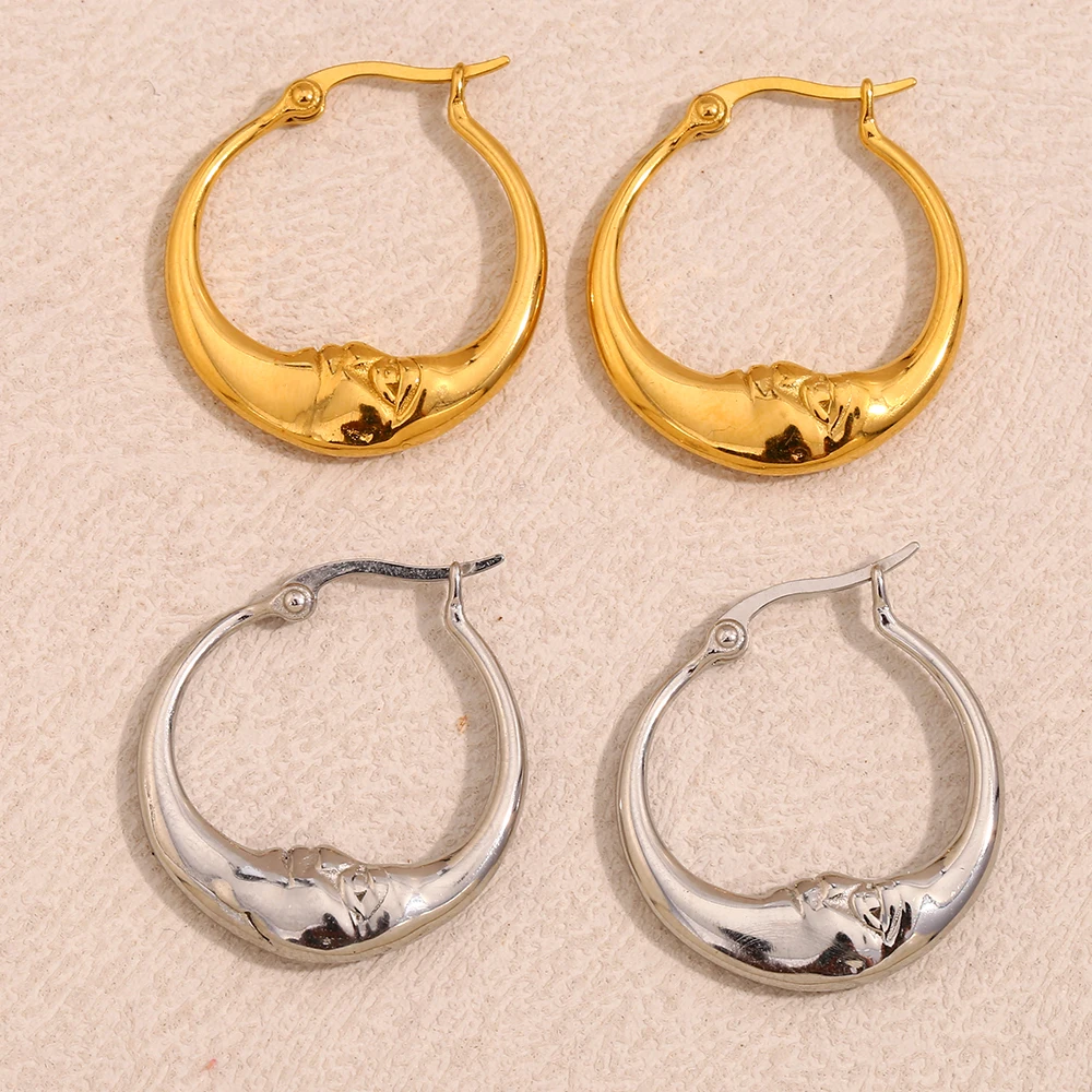 These unique moon hoop earrings combine modern design with a mystical and feminine touch. The curved moon shape gives the hoops a distinctive character, making them a stylish statement piece.