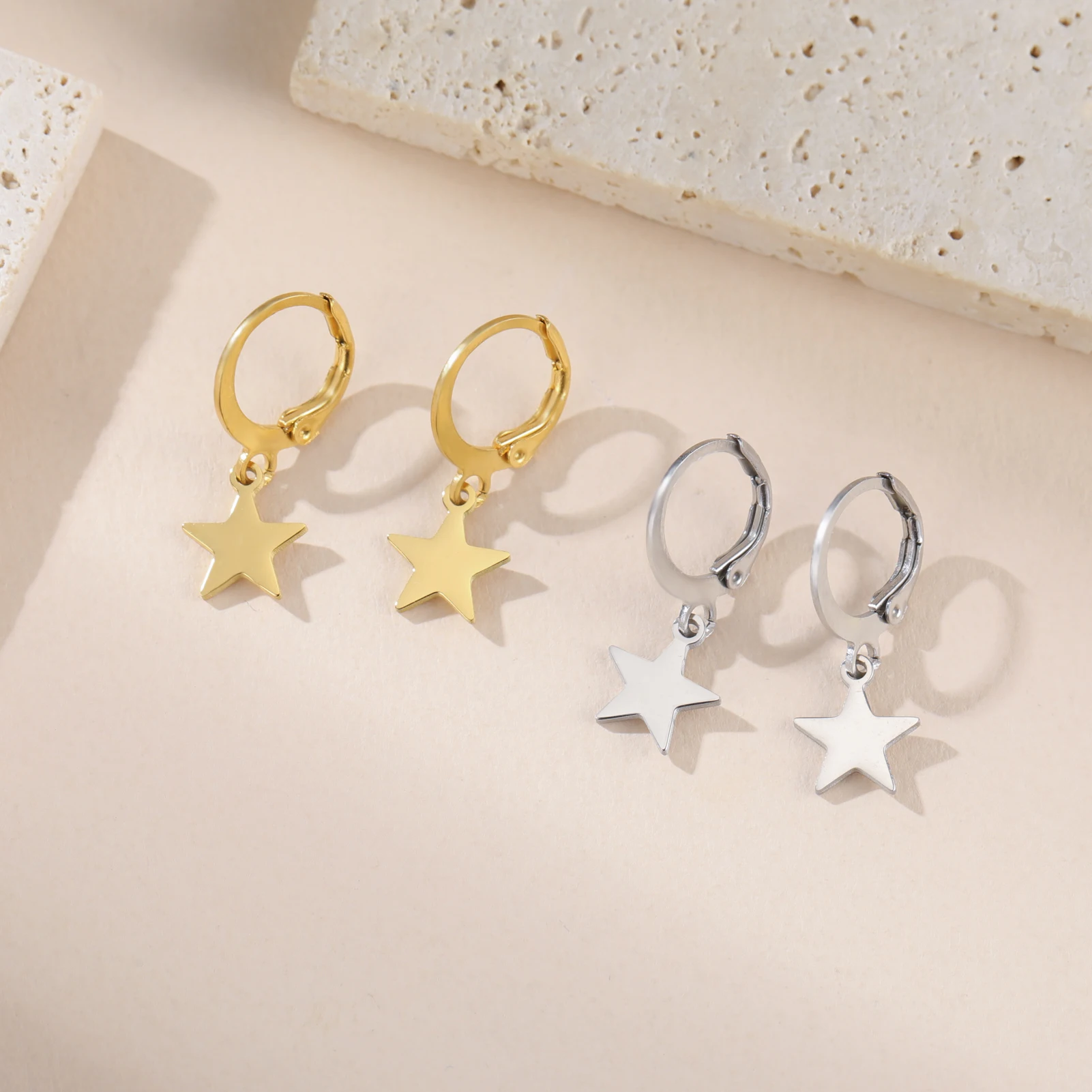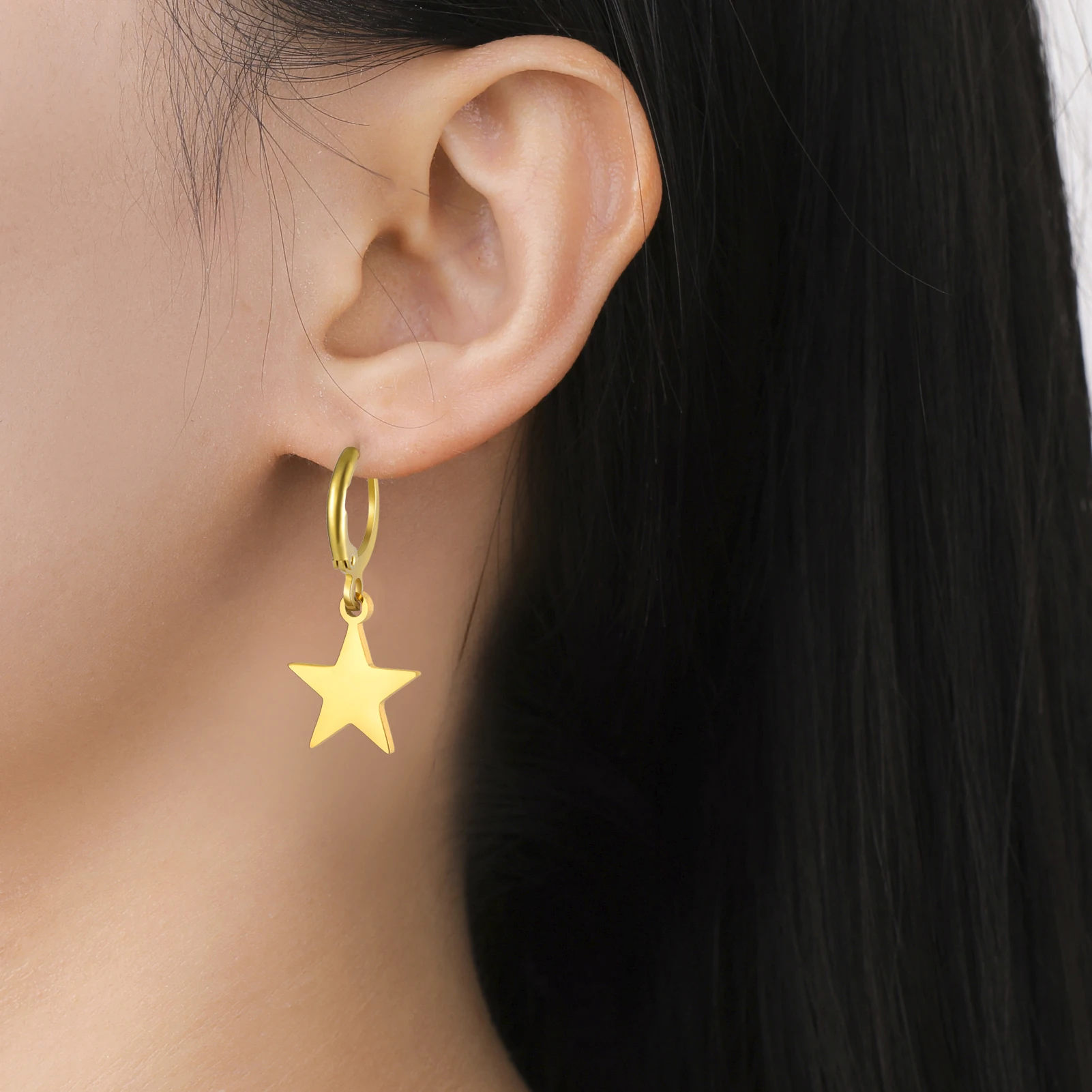 These stylish moon star earrings combine minimalist design with a playful celestial touch. The delicate moon and star charms create an elegant and eye-catching look with a light, dreamy feel.