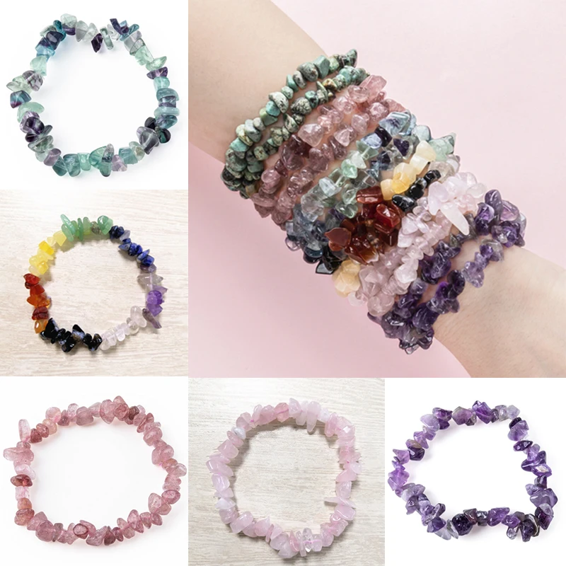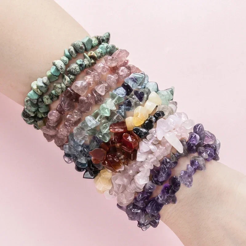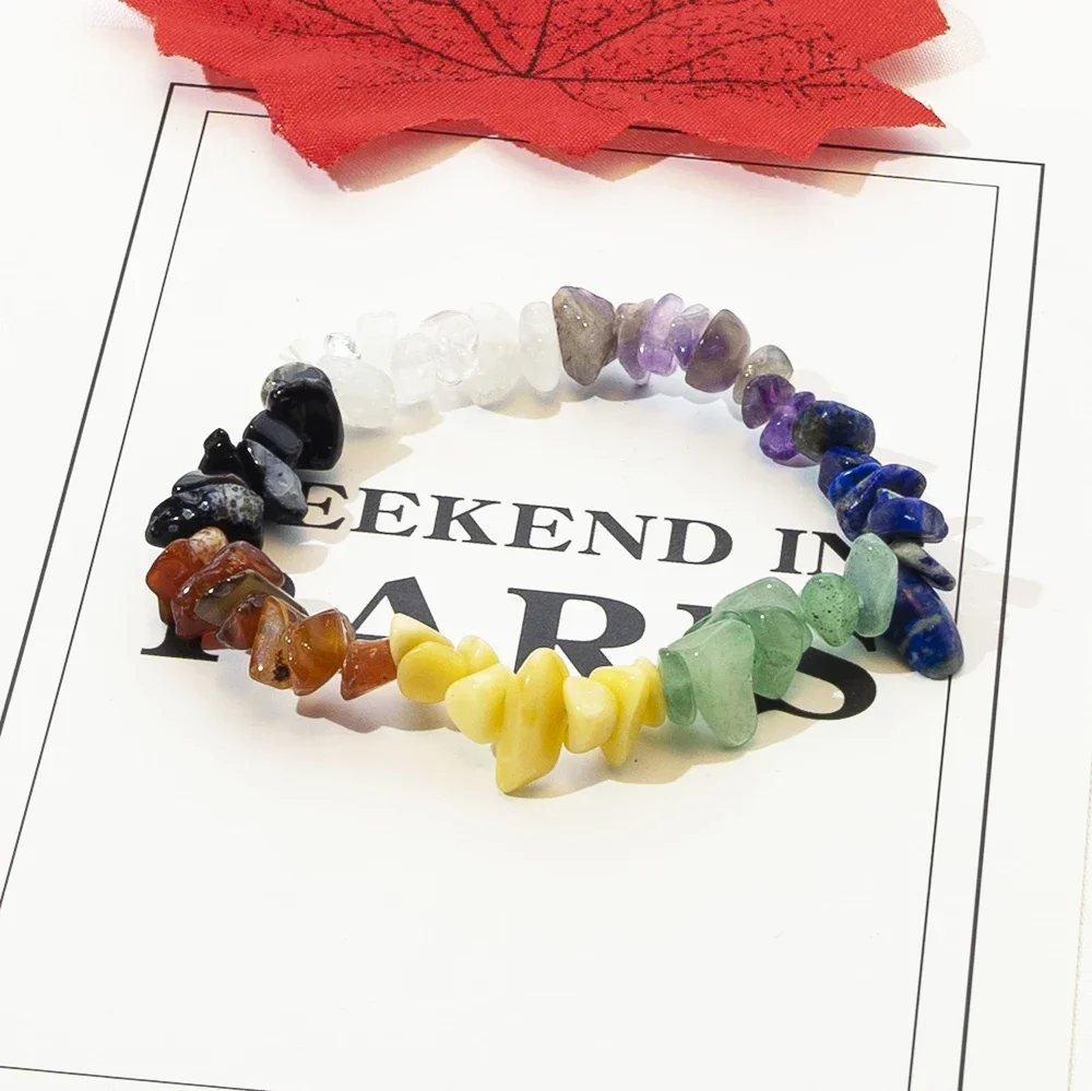 This colorful natural crystal bracelet is made from carefully selected irregular crystal chips, each known for its healing and energetic properties.