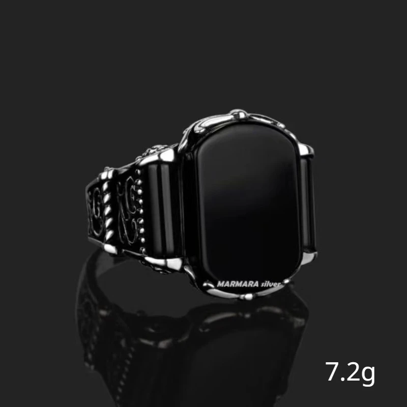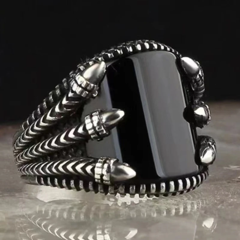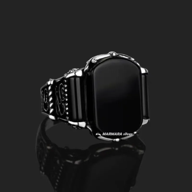 Der European & American Retro Pattern Black Gemstone Ring ist ein markanter Statement-Ring für Männer mit Charakter und Stilbewusstsein.