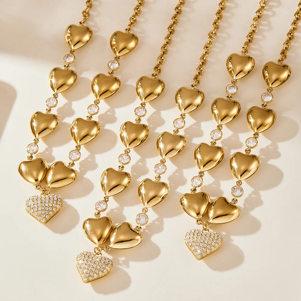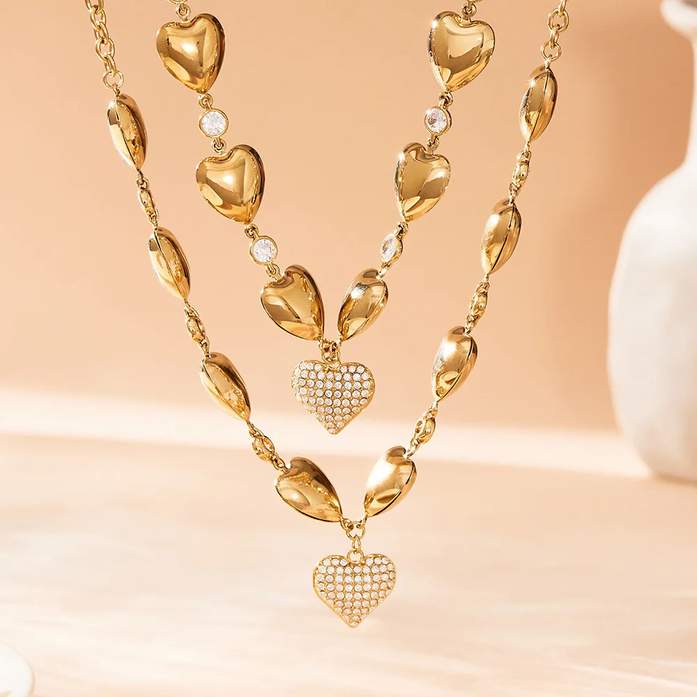 Product Name: Shiny Zircon Heart Chain Pendant Necklace – 18K Gold-Plated Stainless Steel