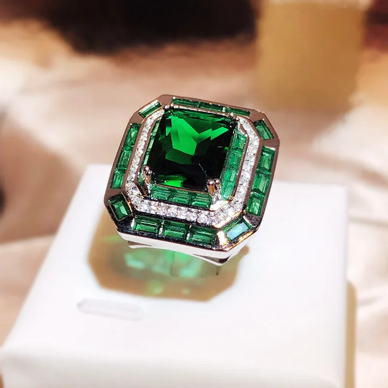 Der Fashion Green Big Square Crystal Ring besticht durch seinen großen, quadratischen Hauptstein in intensivem Smaragdgrün – ein echter Blickfang für alle, die glamouröse Akzente lieben.