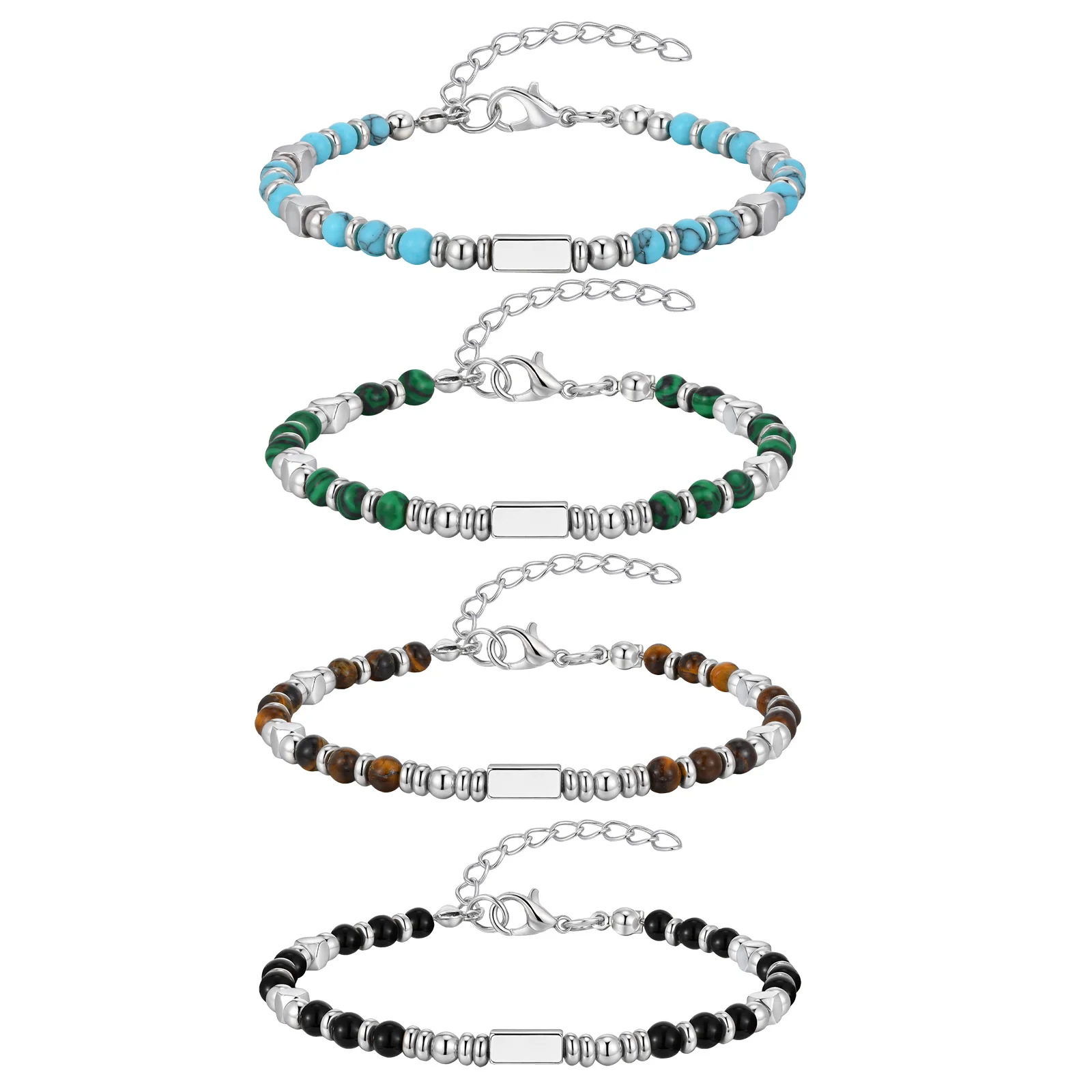 The mix of natural stone beads and a durable stainless steel chain creates a unique contrast between nature and urban style. Crafted with high-quality materials, the bracelet is resistant to wear, corrosion, and tarnishing while offering a comfortable fit.