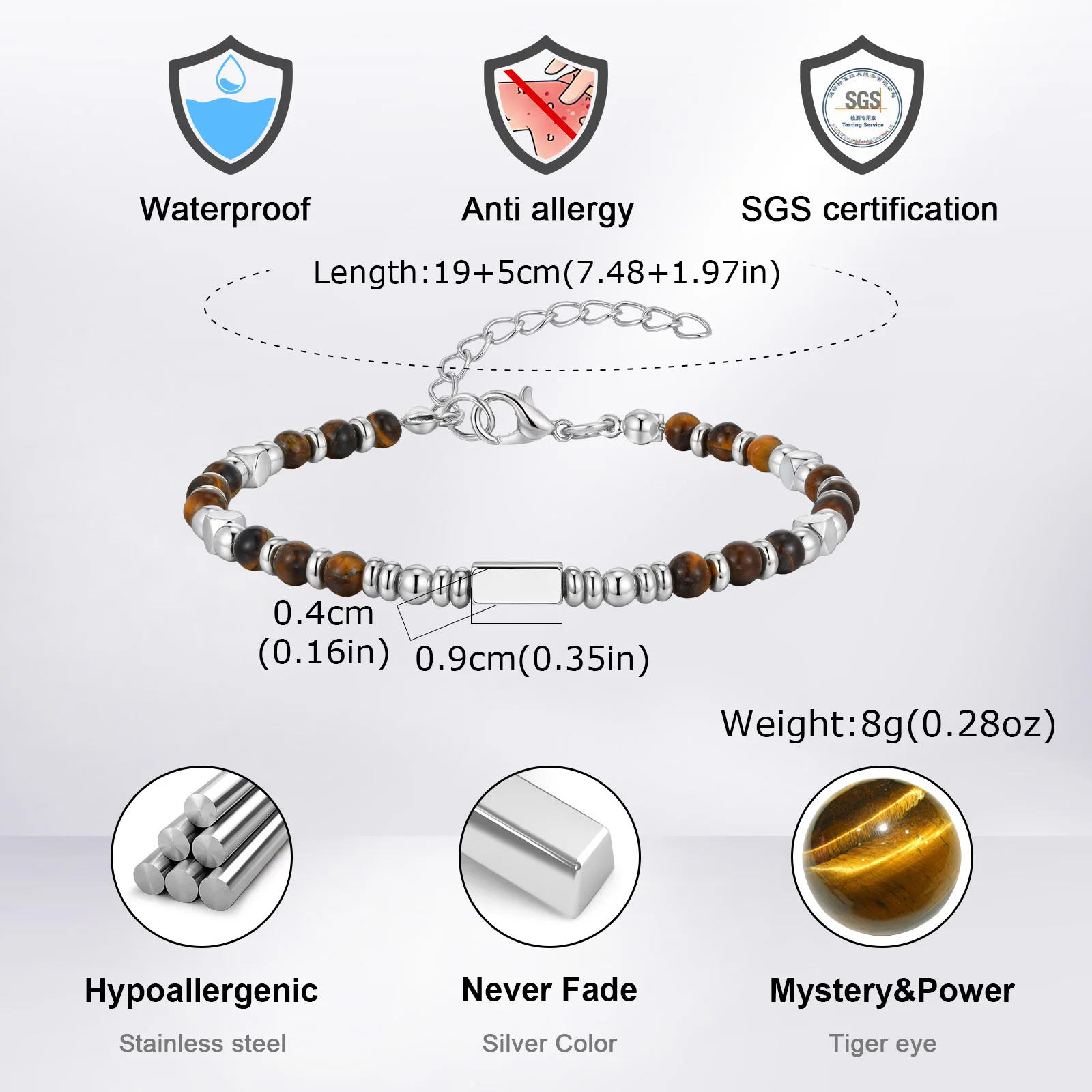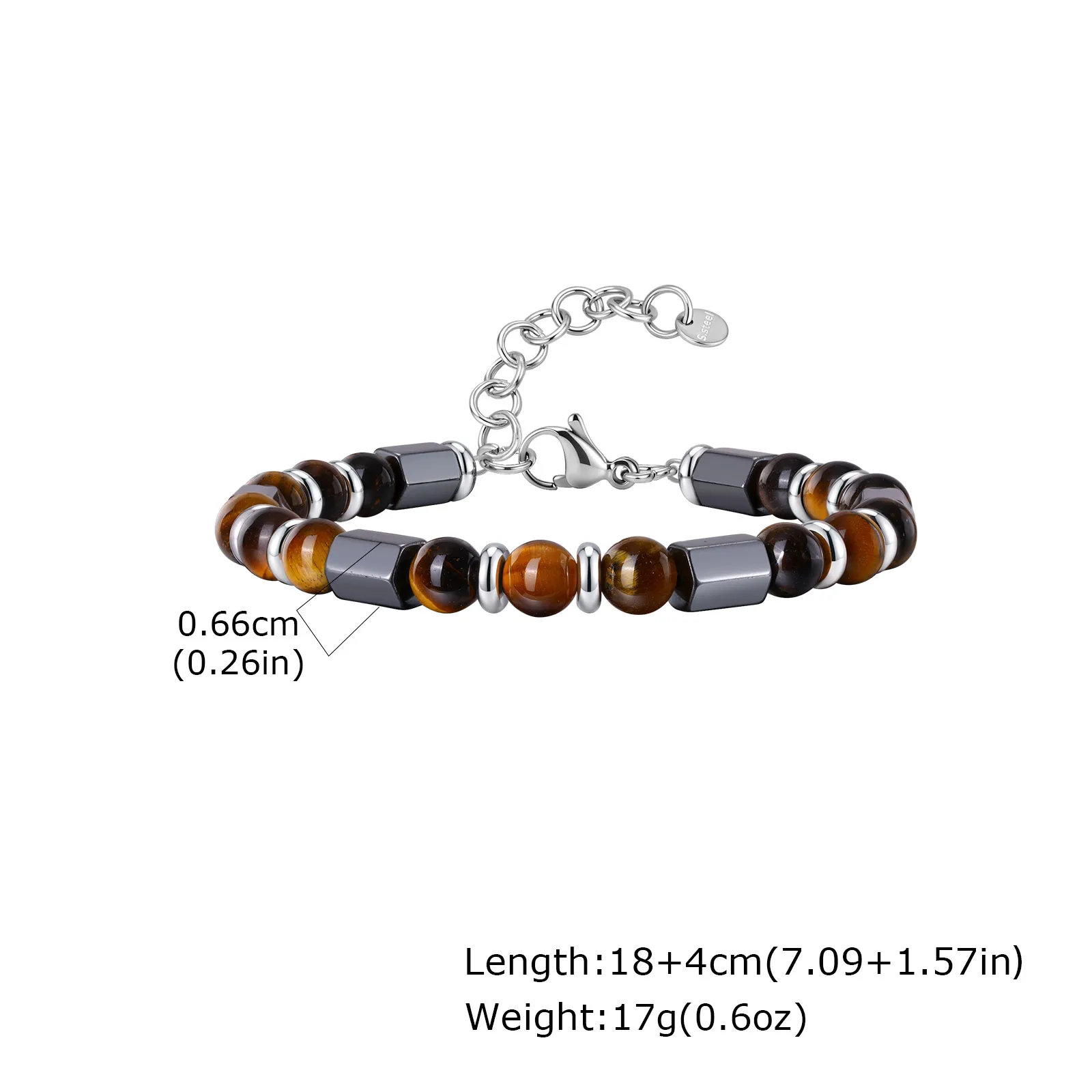 Material: Natural stone (tiger eye), stainless steel