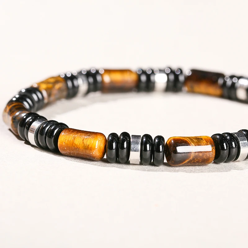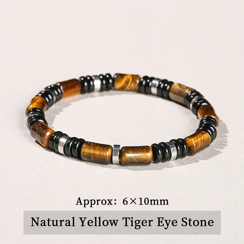 This stylish tiger eye tube bracelet combines classic natural stone aesthetics with a modern and clean design. The elongated tube-shaped tiger eye beads create a unique structure, giving the bracelet an elegant yet powerful appearance.