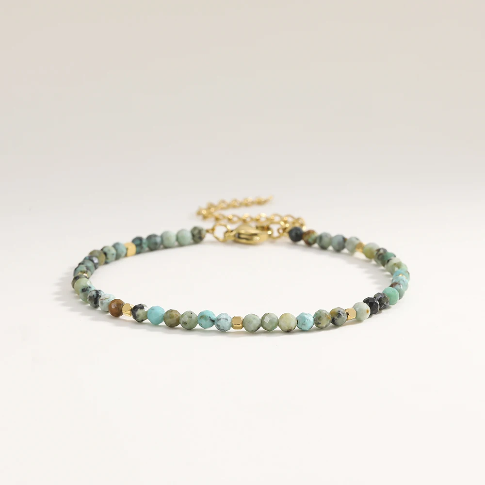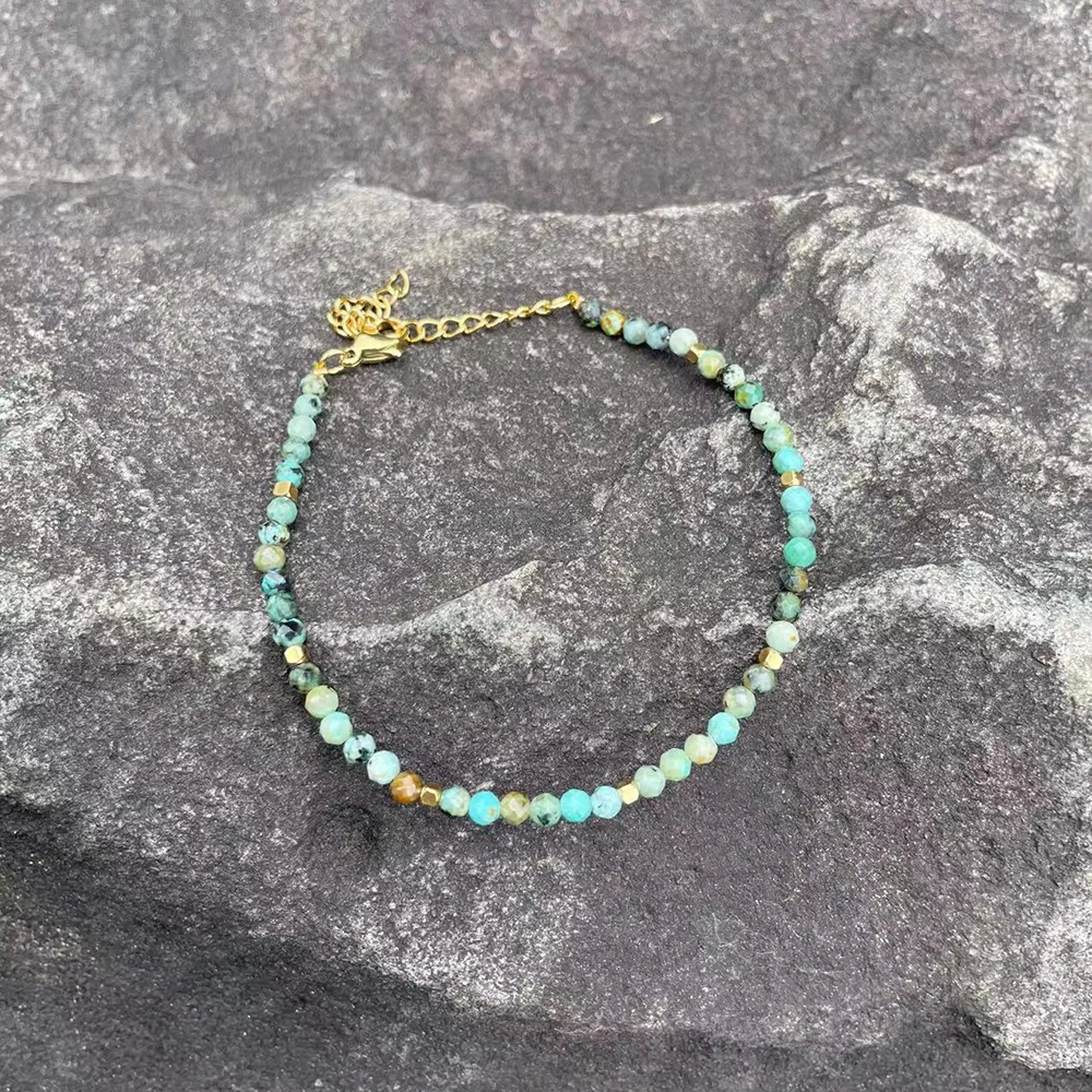 This delicate turquoise gold bracelet combines minimalist design with natural elegance. The 3 mm faceted natural stone beads in African turquoise style create a subtle yet expressive look.