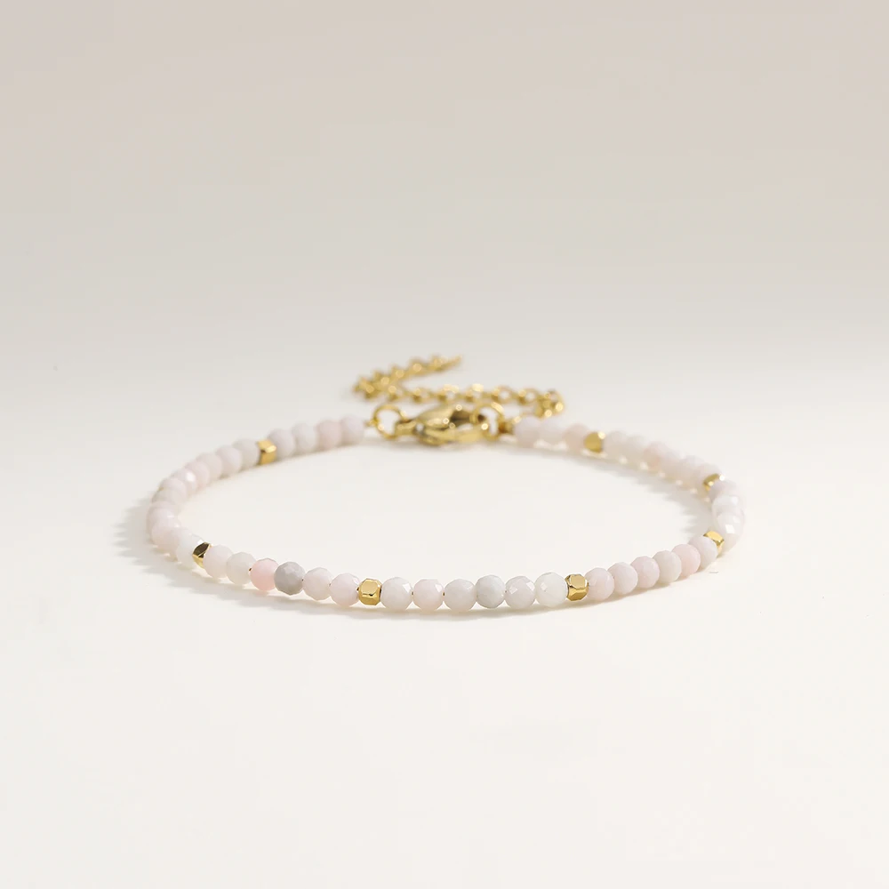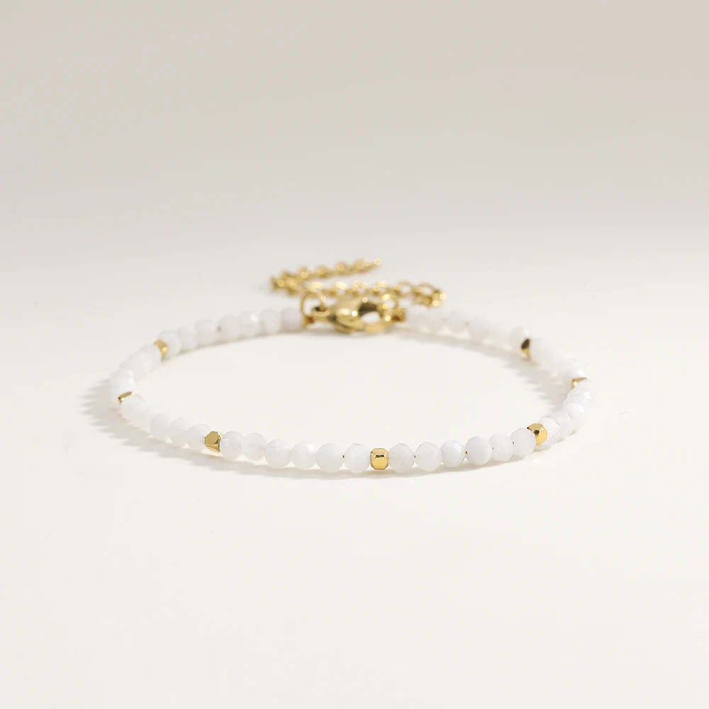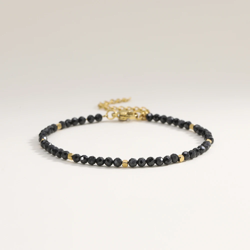 Small geometric stainless steel elements with a gold-tone finish add refined accents and give the bracelet a modern, luxurious touch. Its fine design makes it perfect for layering or wearing as a subtle everyday highlight.