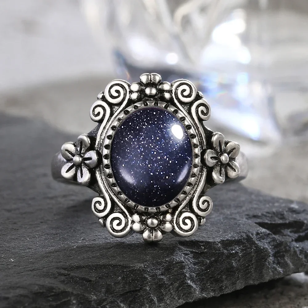 Dieser Vintage-Ring aus 925 Sterling Silber vereint natürliches Design mit mystischer Eleganz: