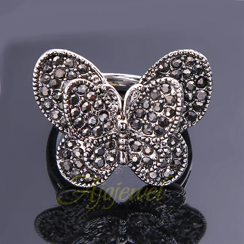 Dieser Ajojewel Vintage-Schmetterlingsring verbindet verspieltes Design mit dunklem Retro-Glamour: