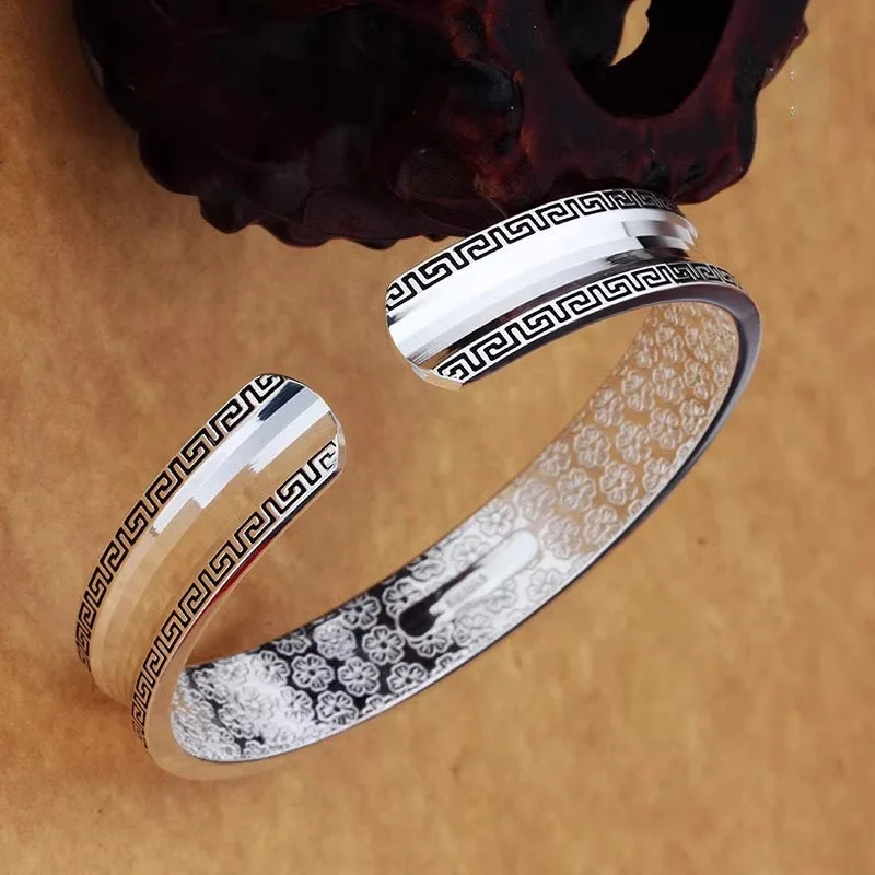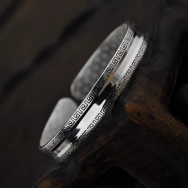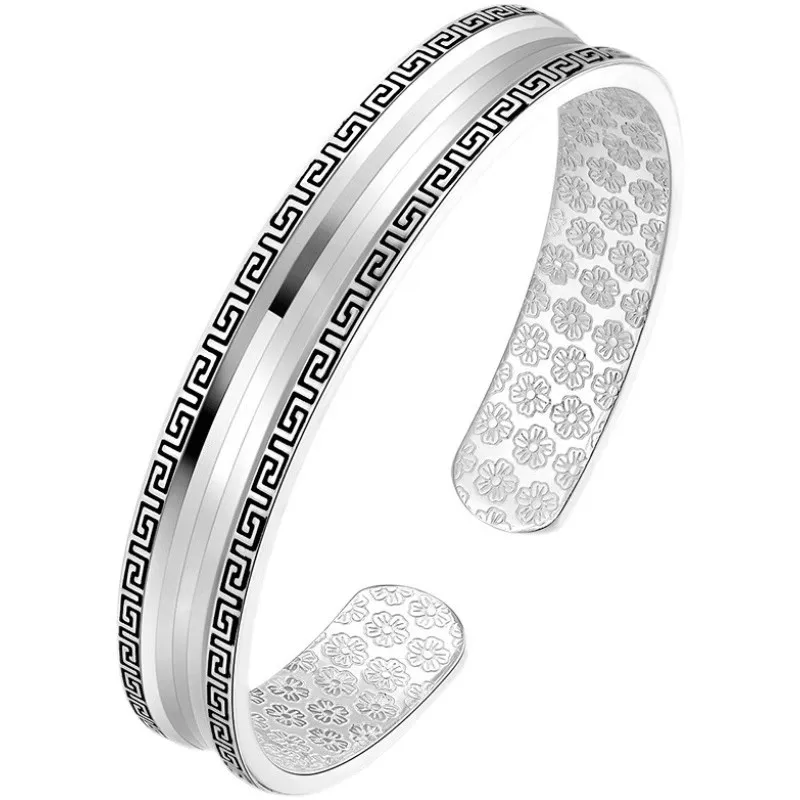 - Produktname: Vintage Circular Texture Armreif mit Blumen-Gravur (Unisex)
