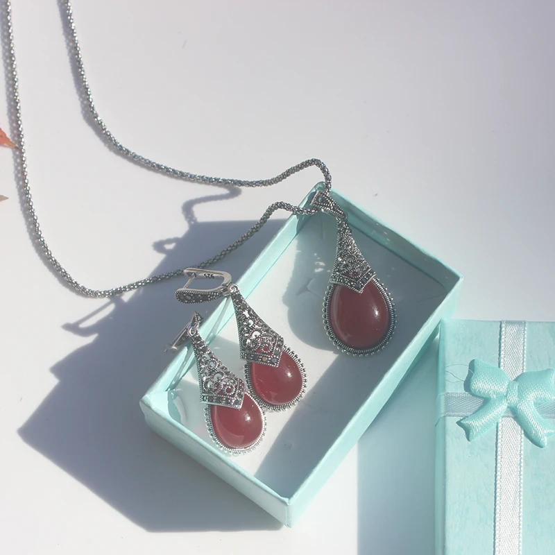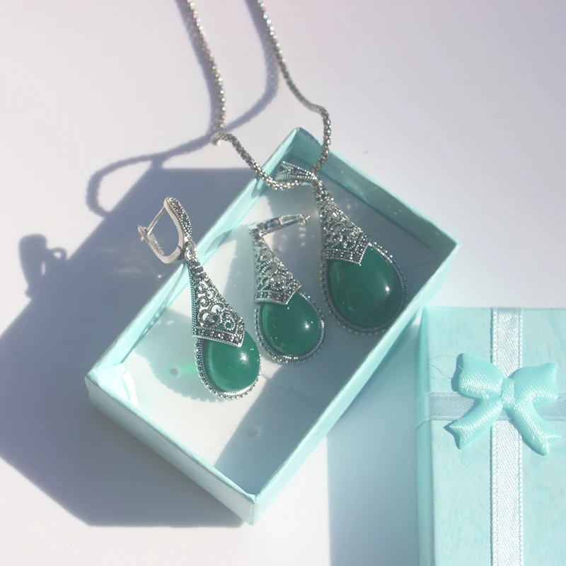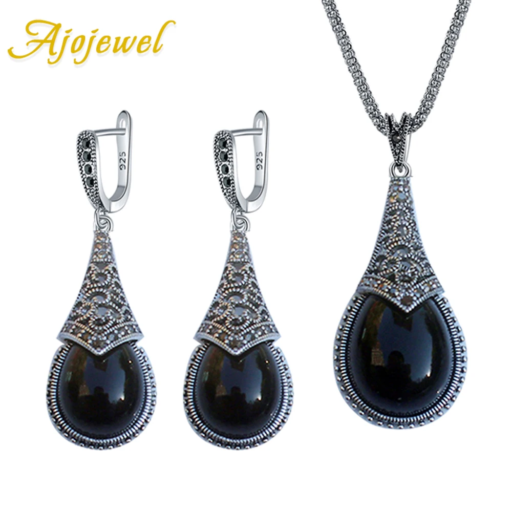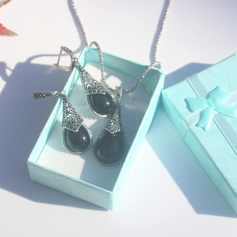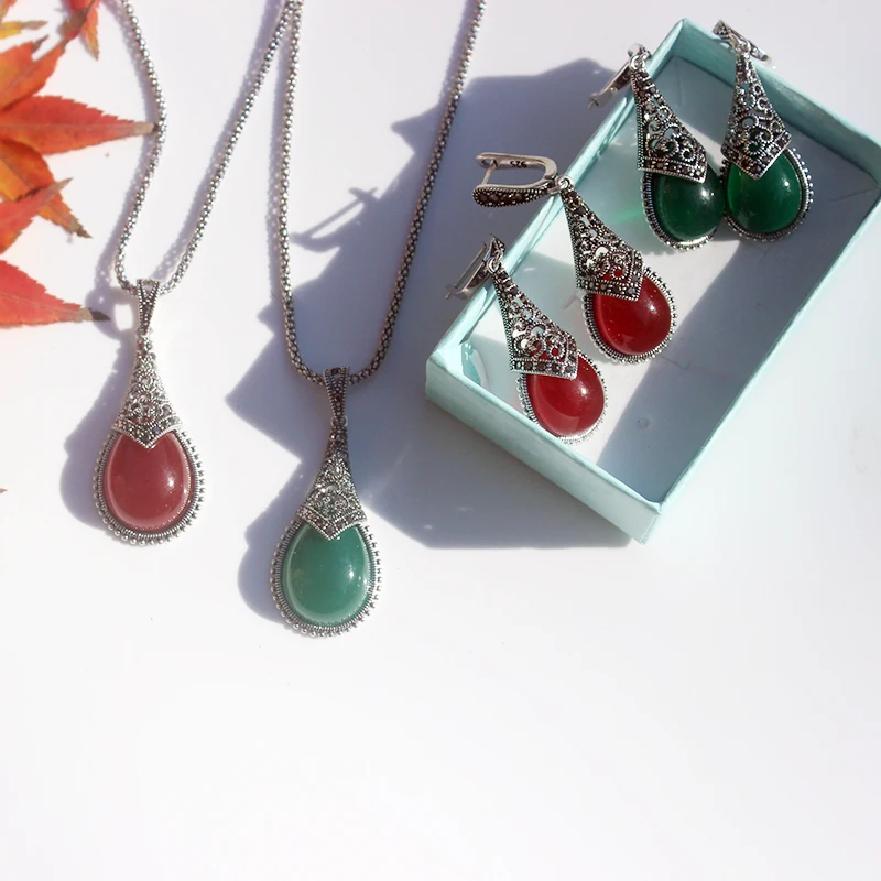 This Ajojewel original waterdrop vintage jewelry set features an elegant teardrop design with striking stones in black, green, or red (depending on your choice).