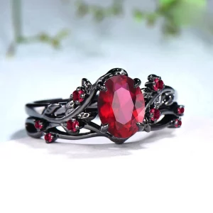 Produktbeschreibung Das „Crimson Thorn“ Ring-Set verkörpert eine perfekte Balance aus Leidenschaft und Stärke – inspiriert von der Symbolik der Rose mit ihren Dornen.Die filigran gearbeiteten Rosenzweige umschlingen den tiefroten Cubic Zirkonia, der wie ein funkelndes Herz in dunklem Glanz erstrahlt. Gefertigt aus robustem Kupfer mit Gun-Black-Beschichtung, vereinen diese Ringe Vintage-Charme mit moderner Ausdruckskraft.Ob als Hochzeits-,…