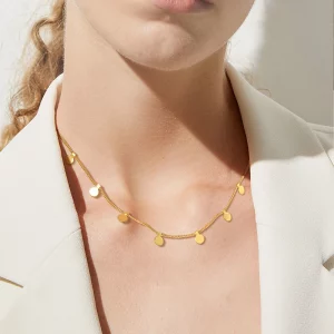 Produktbeschreibung Diese zarte Coin-Kette vereint minimalistischen Chic mit moderner Alltagstauglichkeit:Feine runde Münzanhänger (ca. 6 x 6 mm) sind an einer filigranen Gliederkette aus goldfarbenem Edelstahl befestigt und legen sich elegant um den Hals. Die schlichte, aber wirkungsvolle Optik macht die Kette perfekt zum Layern oder als dezentes Einzelstück. Durch den hochwertigen Edelstahl mit Vakuum-3-Schicht-Beschichtung ist…