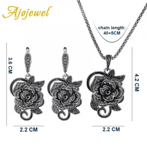 Produktbeschreibung (DE) Dieses Ajojewel Luxury Black Crystal Rose Flower Schmuckset vereint romantisches Rosen-Design mit intensivem, dunklem Glamour. Die detailreich gearbeitete Rosenblüten-Optik wird durch funkelnde schwarze Rhinestones edel betont und erhält durch das Antique-Silver-Finish einen stilvollen Vintage-Charakter. Das Set besteht aus Halskette, Ohrringen und Ring und sorgt für einen harmonischen, luxuriösen Gesamtlook – perfekt für Hochzeiten,…