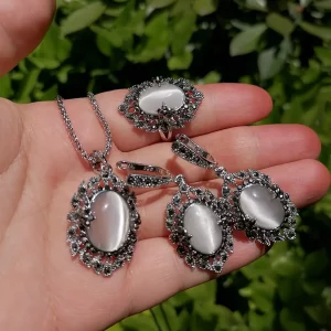 Produktbeschreibung (DE) Dieses Ajojewel Fashion Opal Schmuckset (2023 New) kombiniert schimmernde Opal-Optik mit dunklem, glamourösem Kontrast. Der elegante Opal-Anhänger bringt ein sanftes Farbspiel ins Design, während die schwarzen Rhinestone-Flower-Elemente bei Ohrringen und Ring eine ausdrucksstarke Vintage-Note setzen. Die Platinum-Plattierung sorgt für einen hochwertigen, kühlen Glanz und macht das Set perfekt für Verlobungen, Hochzeiten, Jubiläen oder…